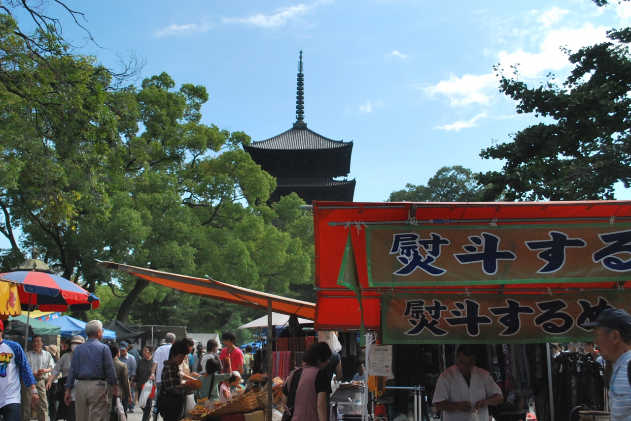 元々”縁日”とは神仏がこの世と”縁”を持つ日とされており、この日に参詣すると大きな功得があるということです。東寺では祖師空海入寂の3月21日を期して毎月21日に御影堂で行われる御影供のことを指しています。