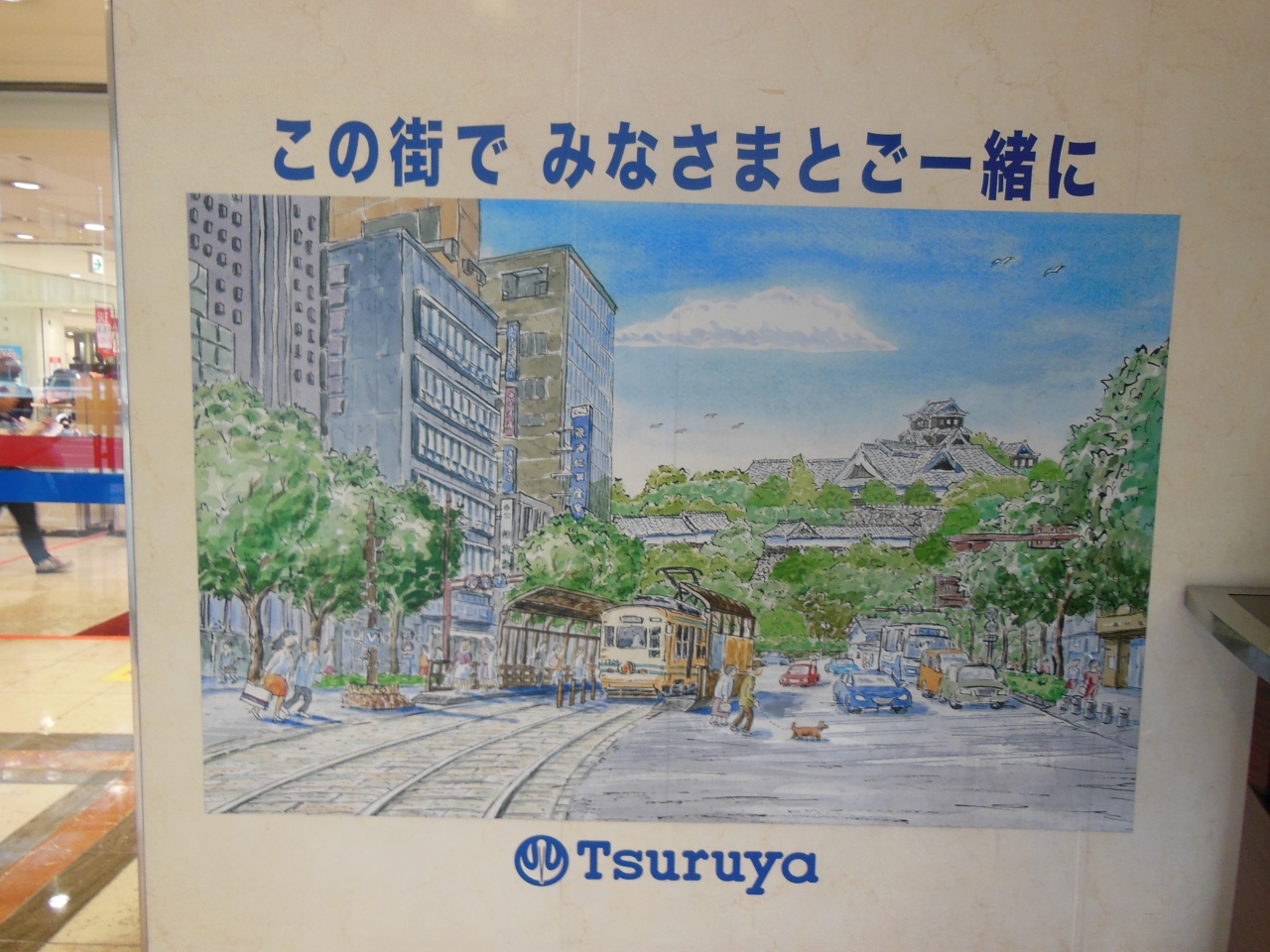 熊本空港からのリムジンバスが、鶴屋デパートの目の前で止まります。B1とB2が食品売り場になっているので、必要なものを購入するのにとても便利でした。夕方に行くと値下げした食品を買う人たちで賑わっていました。