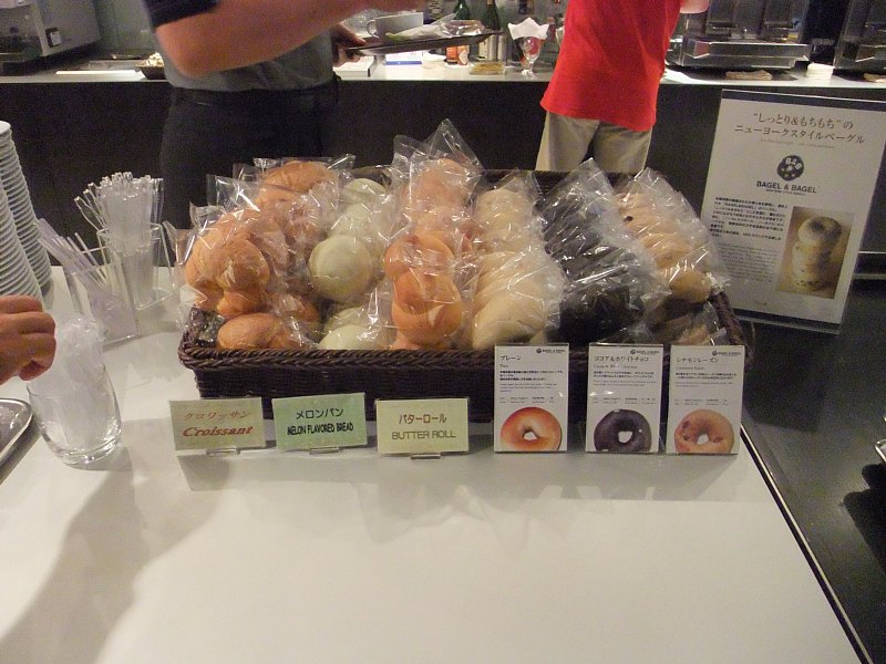 時間帯が朝ということもあって、食べ物はパンやシリアルが中心。ビジネスの場合は機内で食事が出るので、軽く済ませるにはちょうどよい感じ。