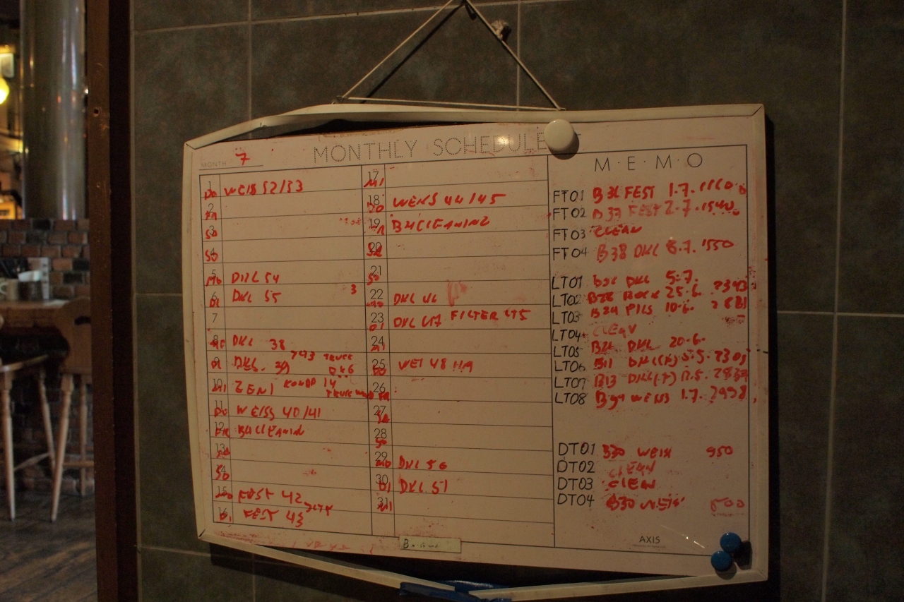 ドイツ人ブラウマイスター(ドイツのビール醸造専門家の資格)のブラウンさんが時々来日して仕込みをしているそうで、このときもちょうど来ていて、オクトーバーフェスト用のビールを仕込んでいました。