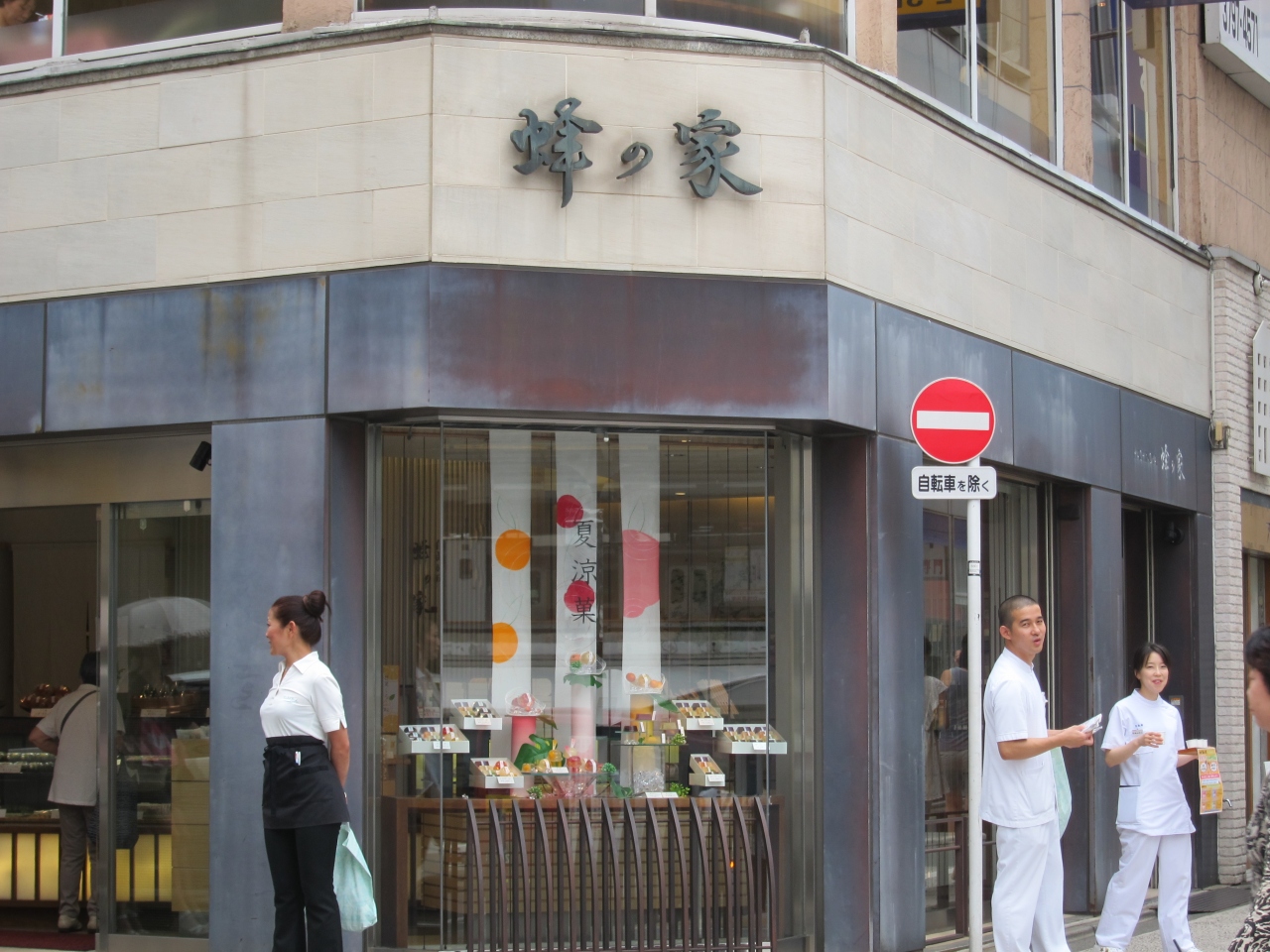 蜂の家は自由が丘駅 北口ロータリーのみすほ銀行前の角にある昭和22年創業の和菓子店です。ここは本店で他にも出店が8店あります。店内ではセンスのある水菓子や団子などが売られていますが、お勧めなのが5種の餡が味わえる「まゆ最中」です。手土産には価格も見た目も最適です。
