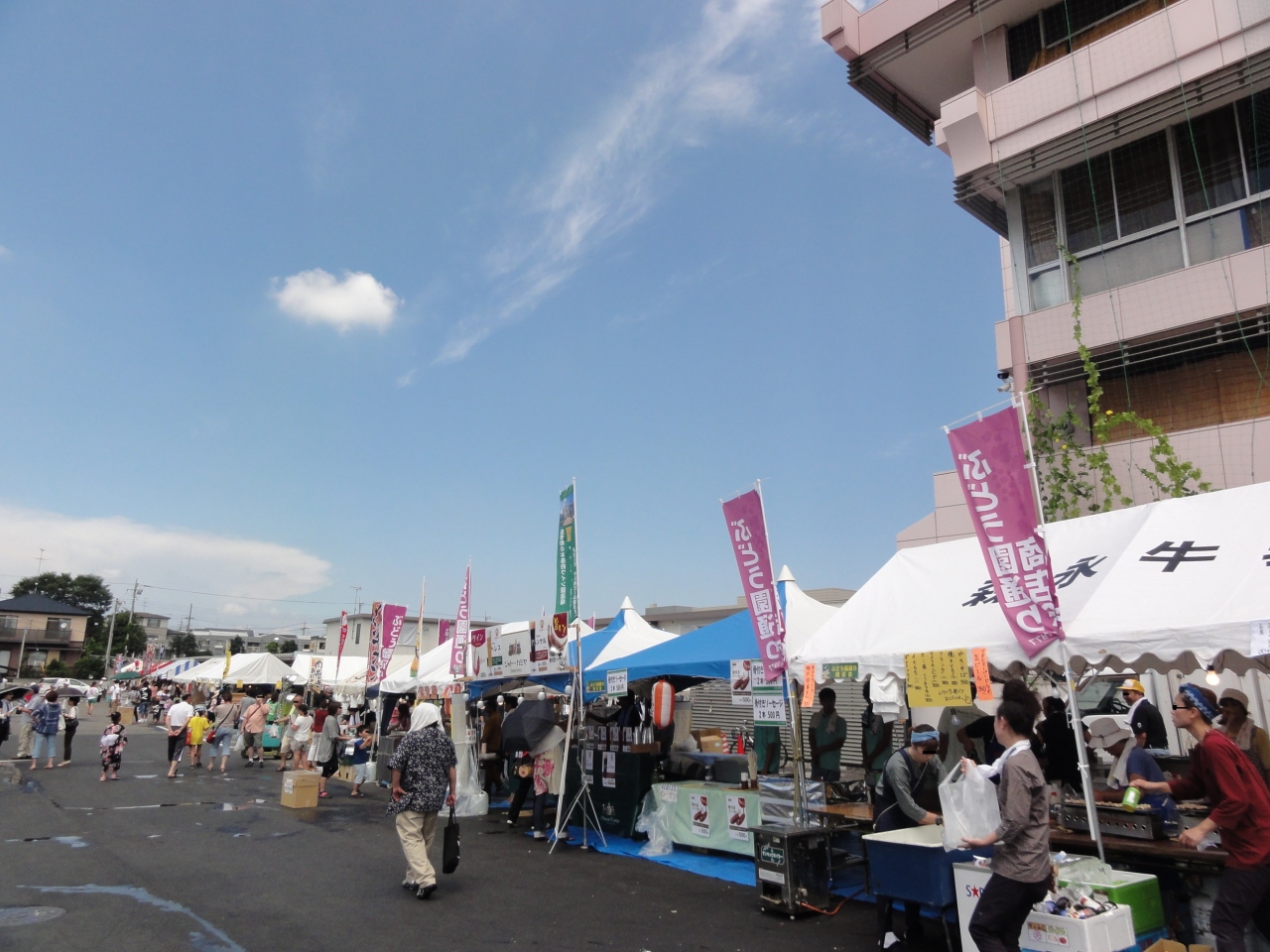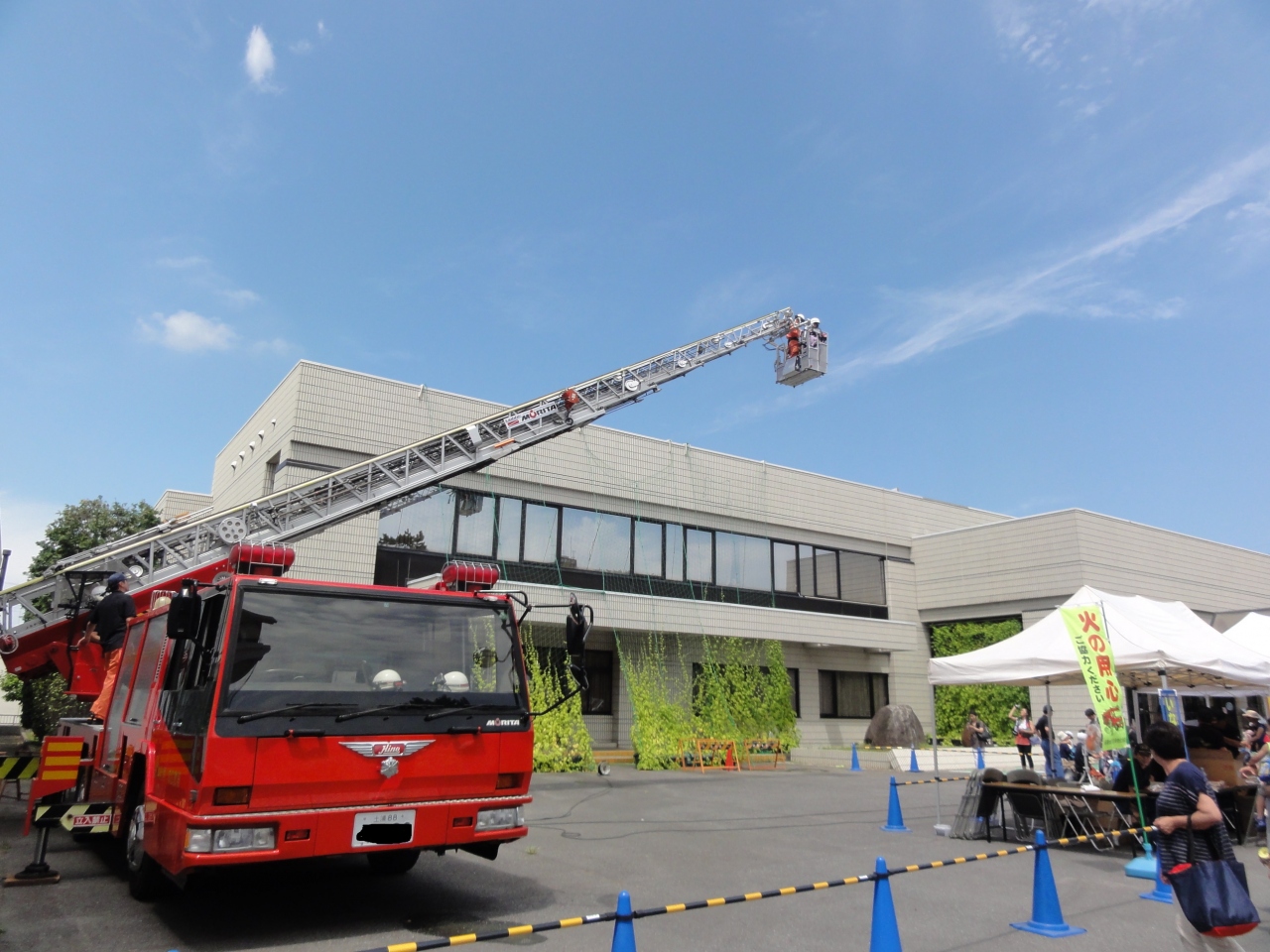踊りの見学じゃなく、牛久市役所にもイベント会場があると聞き行ってみました。お昼過ぎでしたが、駐車場に舞台が設置され、のど自慢の方が歌を披露、地元商店街やサークル、企業のテントでは飲食物や玩具の販売、自衛隊、消防署のテントでは南極の石が見られたり、梯子車の乗車体験コーナーもありました。