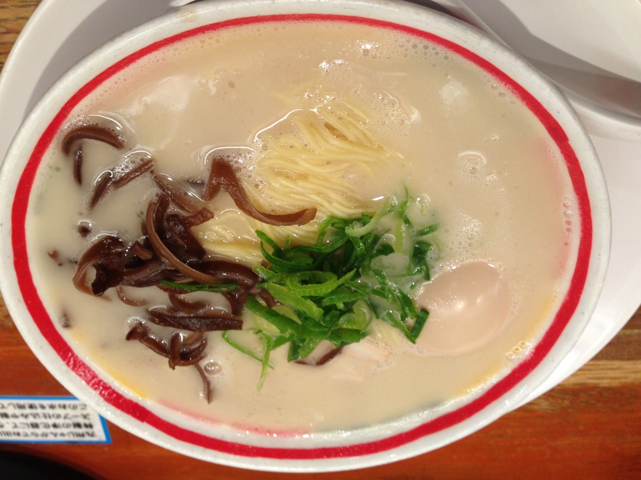 お昼時は、男女問わずに列をなす豚骨ラーメンの店。