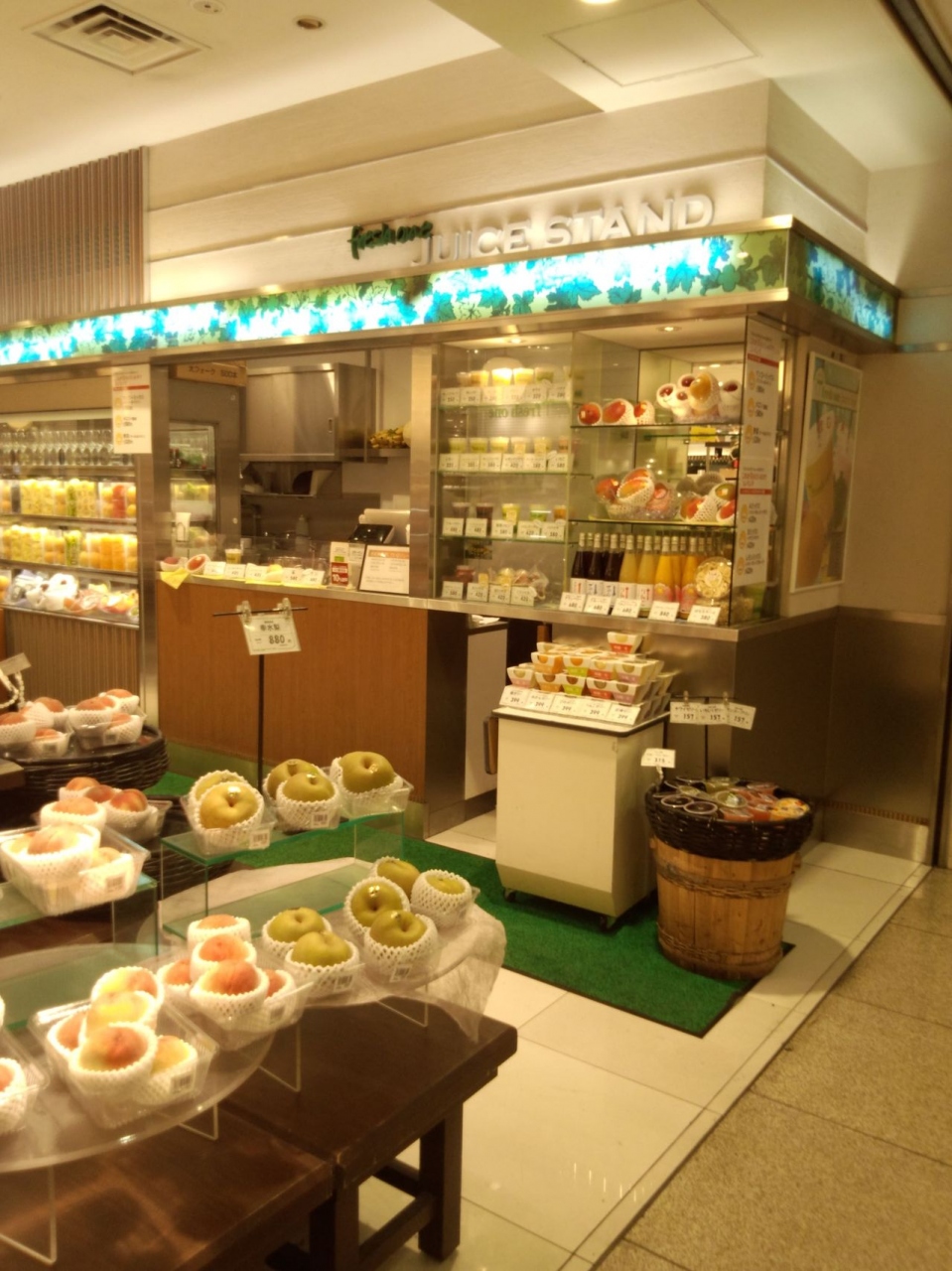 大丸がリニューアルして明るく活気が出てきています。夏休みなので空いていますが ジューススタンドの前に新鮮なフルーツが並んでいます。大きめ桃が5個1,050円 季節感がありすがすがしい感じがあり 買って帰りたくなります。以前買ってみたら 実際 ハズレなく 美味しい(*^_^*) お買い得でした。