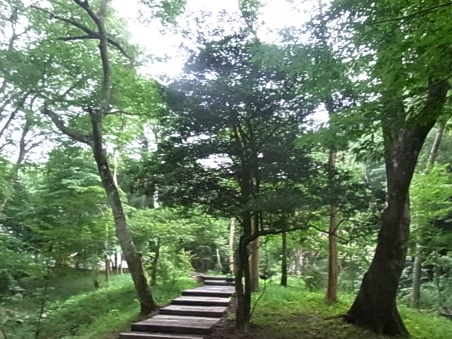 美術館裏手の散策路にいかれることをぜひおすすめいたします。ブナ、ヒメシャラなどのうっそうたる木々に囲まれ、気持の良い森林浴(15~30分)です。