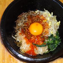 アリオ西新井のフードコートにある石焼ビビンバのお店です。石焼ビビンバは熱した石鍋で提供され、熱々の状態で食べることができます。コゲができるのでとても美味しいです。肉味噌の風味がとてもよく、ナムル、生タマゴなど他の食材のよさを引き出しています。