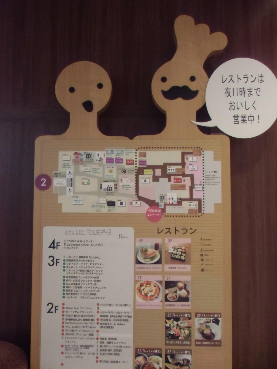 JR岐阜駅前に2007年10月に開業した、文字通り43階建ての商業・住居複合の高層ビルです。駅からは2階部分が連絡通路でつながっています。2階部分にレストランやお店があり、3階部分に福祉・医療施設が入っています。駅とつながっているので便利です。
