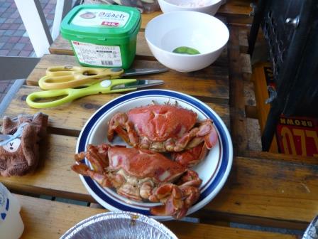 午前の10時半ころにつきましたが、外のテーブルでかにを