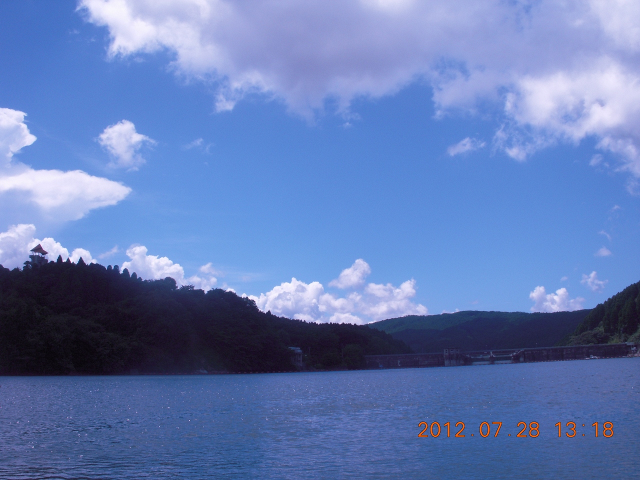 ダム湖でスワンボート