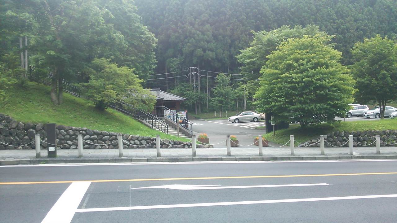東武日光駅から、東武バスで15分。田母沢(たもざわ)バス停で下車、目の前です。停留所番号10番です。