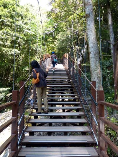 七滝めぐりの遊歩道は綺麗に整備されて、えび滝~釜滝~大滝に行く険しい道には木の階段や吊橋が整備されていて、更に行きやすくなりました。