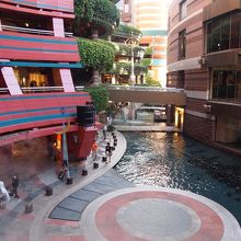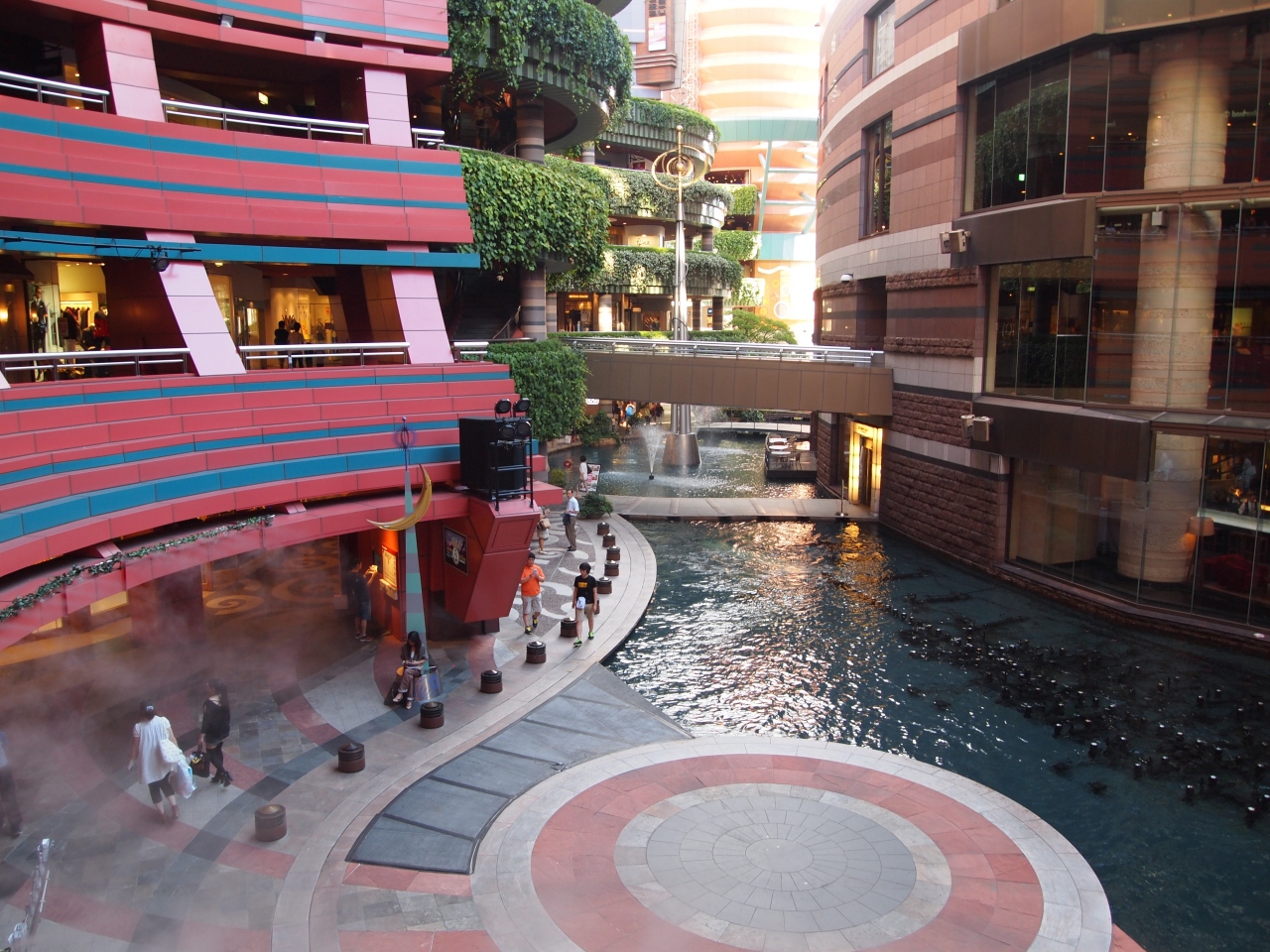 博多キャナルシティは博多駅と天神の2つの大きな商業地域の中間にありますが、