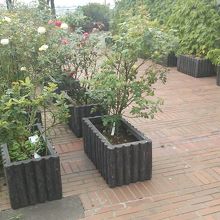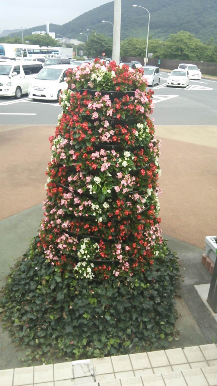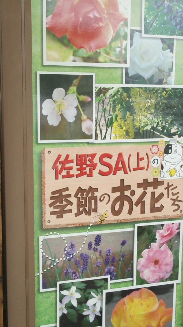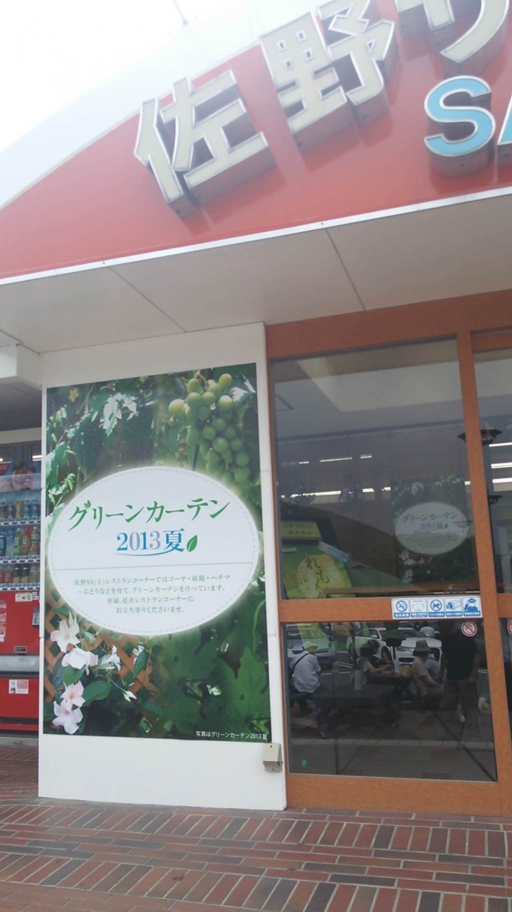 佐野サービスエリアの上りレストラン前には、緑の涼しげなガーデニングの草花がたくさんあります。