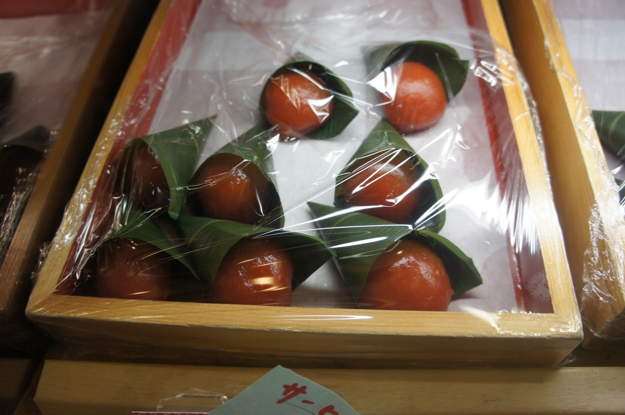 村上屋餅店は、名前からすると、ずんだ餅が看板商品なのでしょうが、お店に入ると色とりどりの生菓子。くずもちの豊富なバリエーションに、こちらが気になってしまいました。で、いただいたのは、赤が鮮やかなトマトのくずもち。トマトの味をまるごと詰め込んだようなストレートな味わい。ストレートすぎて、ちょっとびっくりのくずもちでした。