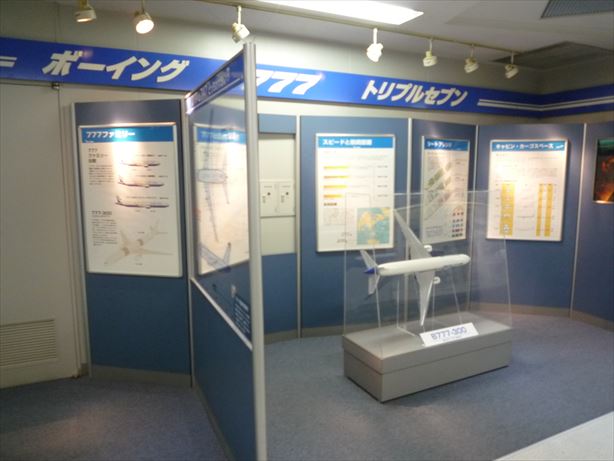 ボーイング777の展示がされていて、模型が置いて有ります。様々なタイプの777を模型で掲示してあって、こんなにも種類が有るんだと感心させられます。