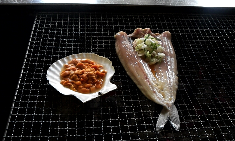 もう一品何かを、ということで、この時期のもの、ウニ焼も奮発していただいてみました。焼くとウニの甘みが増すそうです。でも火を通しすぎると身がパサパサになってしまうとのことで、その見極めが難しかったです。