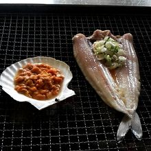 スタッフ/大将が焼き方を教えてくれます。焼き方といっても放っておくだけですが、身が薄く火が通りやすいしっぽから、火が通ると簡単に身がくずれるので、それが食べ時の合図ということさえわかれば大丈夫。