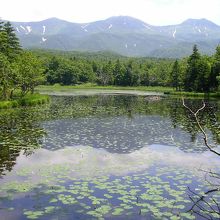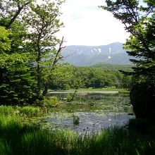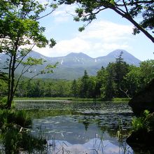 知床五湖はどの湖からも知床連峰の山々が見えますが、特にこの二湖からの眺望が優れているので多くの観光客がカメラを構えて撮影していました。7月の初めに行ったのですが、知床連山には雪が残っており、天気もよかったので素晴らしい写真をとることが出来ました。