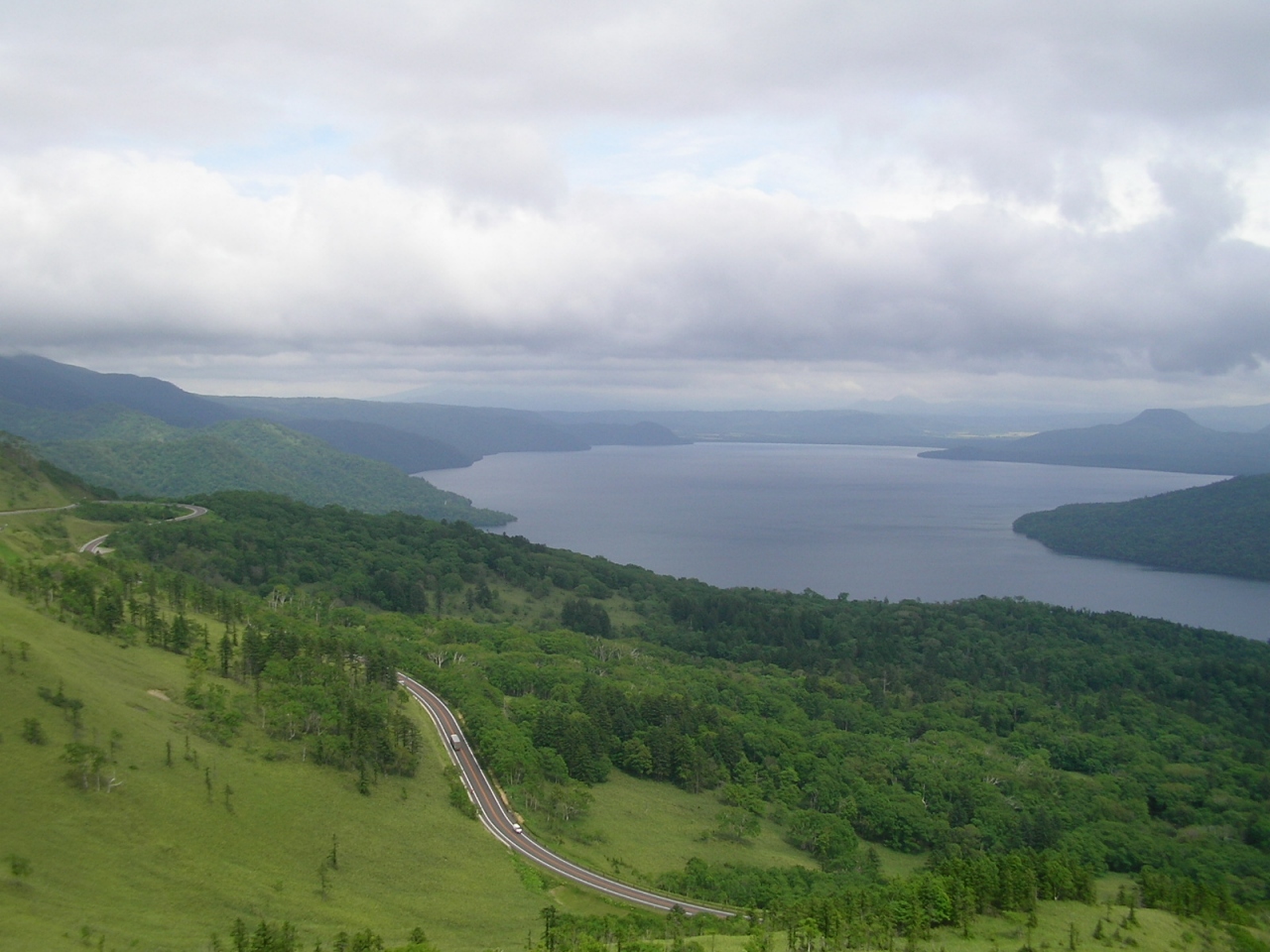 日本最大の屈斜路カルデラのなかに横たわる巨大な湖です。周囲57km、最大深度117.5mの日本で6番目(カルデラ湖で1番)の大きさを誇るカルデラ湖です。湖心に浮かぶ中島は、淡水湖内では日本一大きい島で、周囲12km、面積5.7平方キロメートルもあります。火山地帯であることから、周囲には火山や温泉が多数存在し、湖岸を掘ると湯が湧き出す砂湯は観光名所となっています。国道243号線の美幌峠から見ましたが、眼下に広がる雄大な原生林に囲まれた湖は素晴らしいスケールでした。
