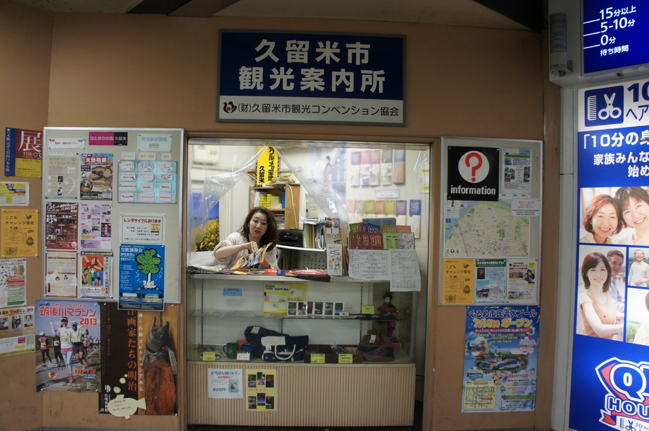 久留米市観光案内所は、JR久留米駅と西鉄久留米駅の両方にあります。私が利用したのは、西鉄久留米駅の方。6時のちょうど閉まる時間でしたが、声を掛けると気持ちよく、また開けていただきました。尋ねたのは久留米ラーメンのお店。近くの店を教えていただきまして、ありがとうございました。