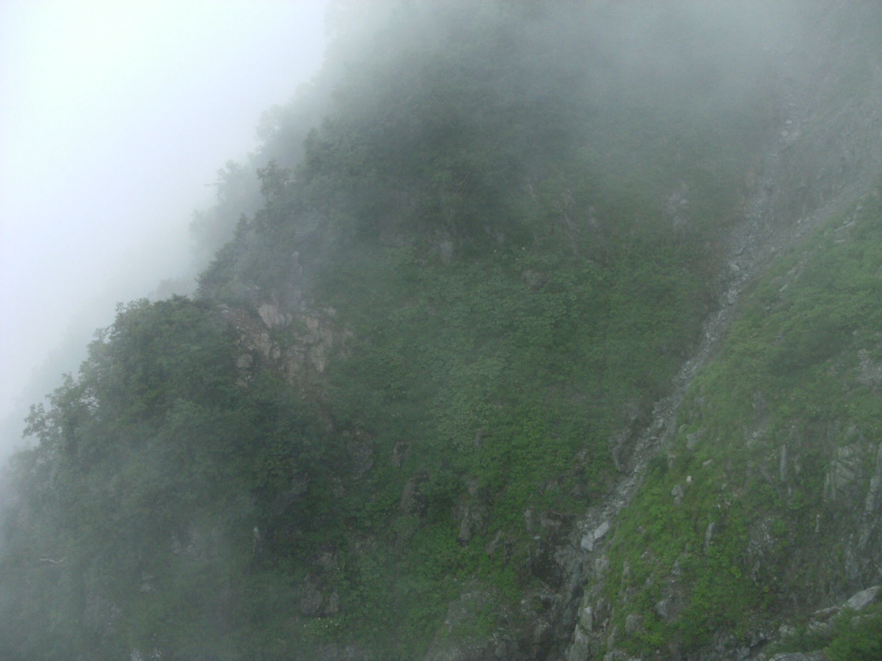 室堂からのトロリーバスと黒部平へのロープウェイの中継点。岩峰の土手ッ腹をくりぬいてつくられた駅で、天気が良ければ北アルプスの山々を見渡すすばらしい展望台なのでしょうが、ここを通る登山道はないので、周囲を散策するわけにもいかず、天気が悪いと何もすることがありません。売店や食堂はありますけどね。