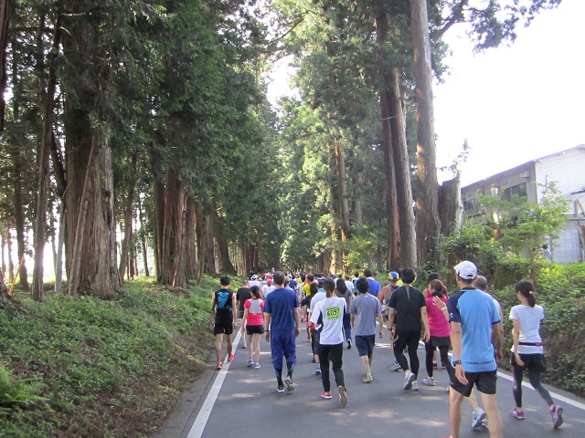 ウィキペディアを参照したところ、街道を通る自動車の排気ガスの影響で杉木の枯死が起きており、早急な対策が必要とされているそうです。毎度マラソン大会に参加するにあたり、道路を封鎖させてもらっていることに幾分申し訳なさを感じていますが、今回は数時間でも車の通行を止めたことで、杉の木もちょっと一息といったところでしょうか。