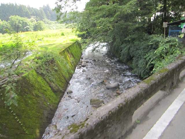 道路の両側に大きな杉の木が立ち並んでおり、日差しを遮っているため、真夏にもかかわらずヒンヤリとした冷気すら感じるくらいです。途中には小川のせせらぎもあり、森林浴を味わうことができます。天然記念物に指定されているのも宜なるかな、というかんじです。