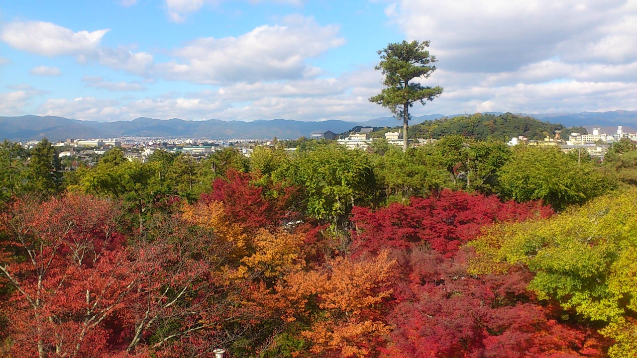 三門の上から、秋の紅葉がきれいに遠くまで見えます。