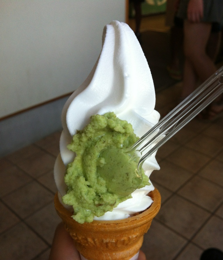 道の駅天城越えに立ち寄るときには絶対に食べます。食券を買ってカウンターで渡すとお店の人がその場でわさびをすりおろしてくれます。最初はおそるおそる食べましたが、ソフトクリームの甘さとわさびが意外に合う!ソフトクリームを食べながら本わさびが鼻につーんと抜ける感じがくせになりました。