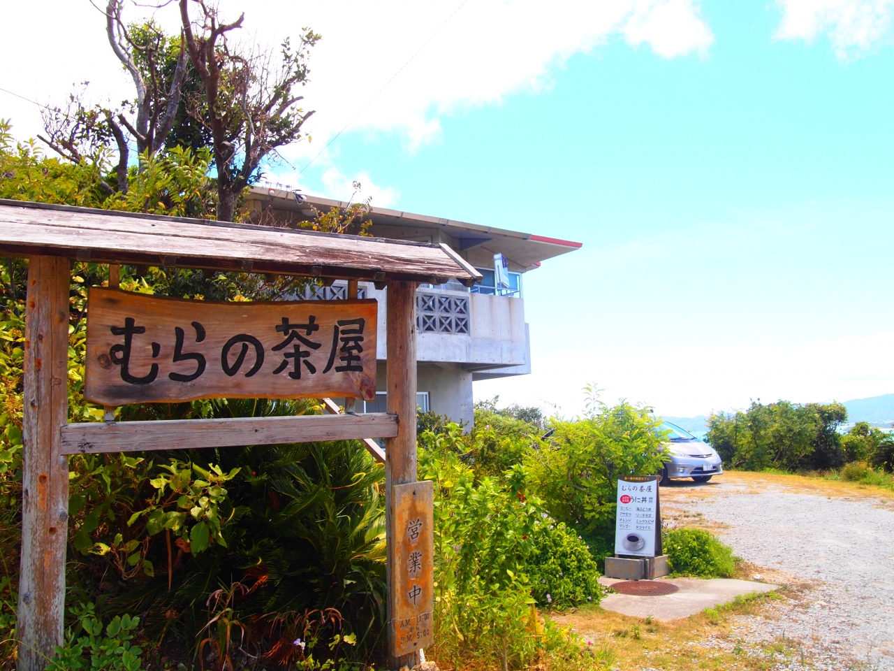 古宇利島の港近くの集落から島中央の集落まで行く途中の道にあるカフェ。