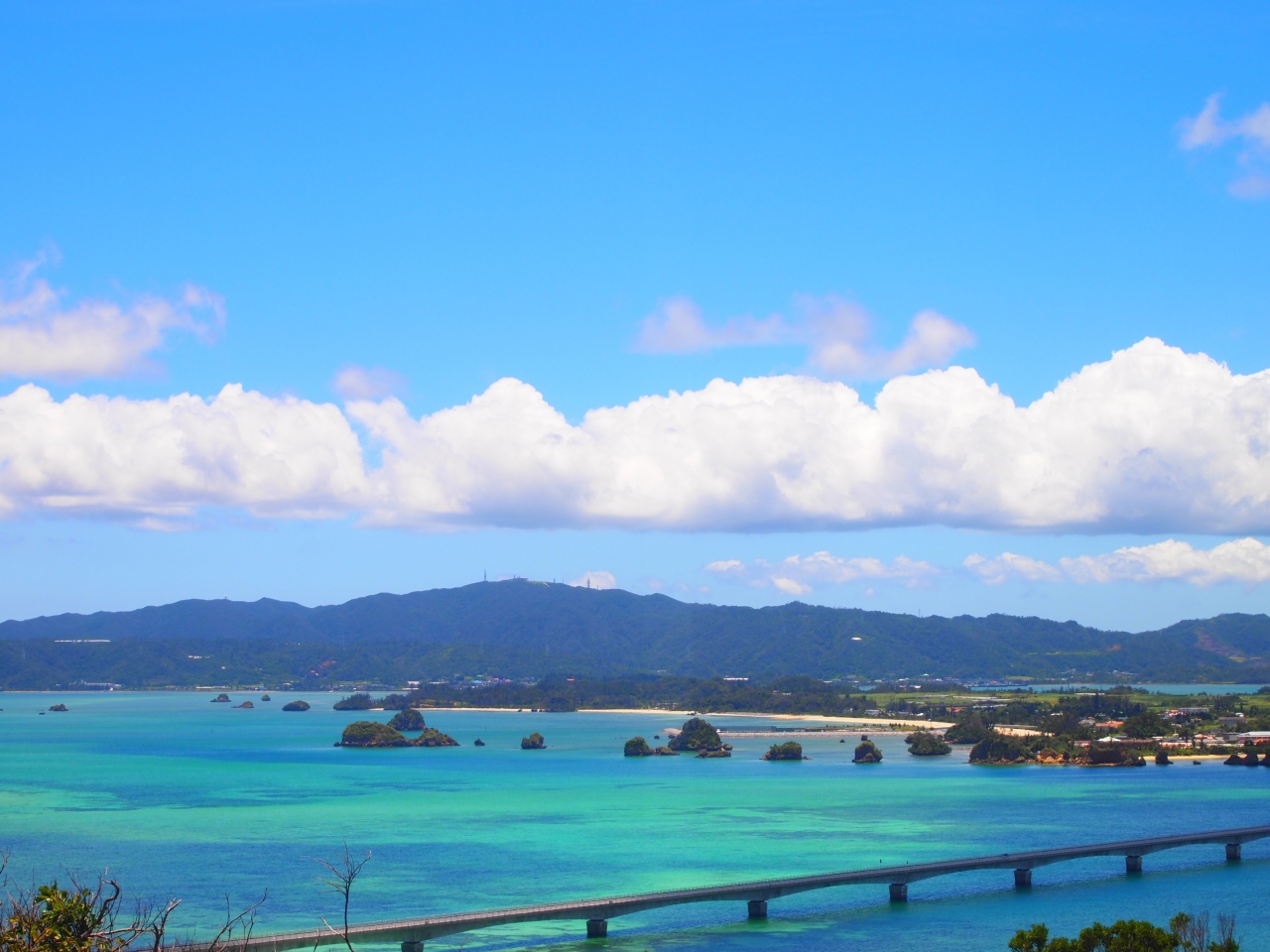 駐車場からも絶景で更にお店は2階部分なので景色はかなり開けて古宇利大橋に綺麗な海を眺めながら食事が出来ます。沖縄そばもありましたし甘味もありました。