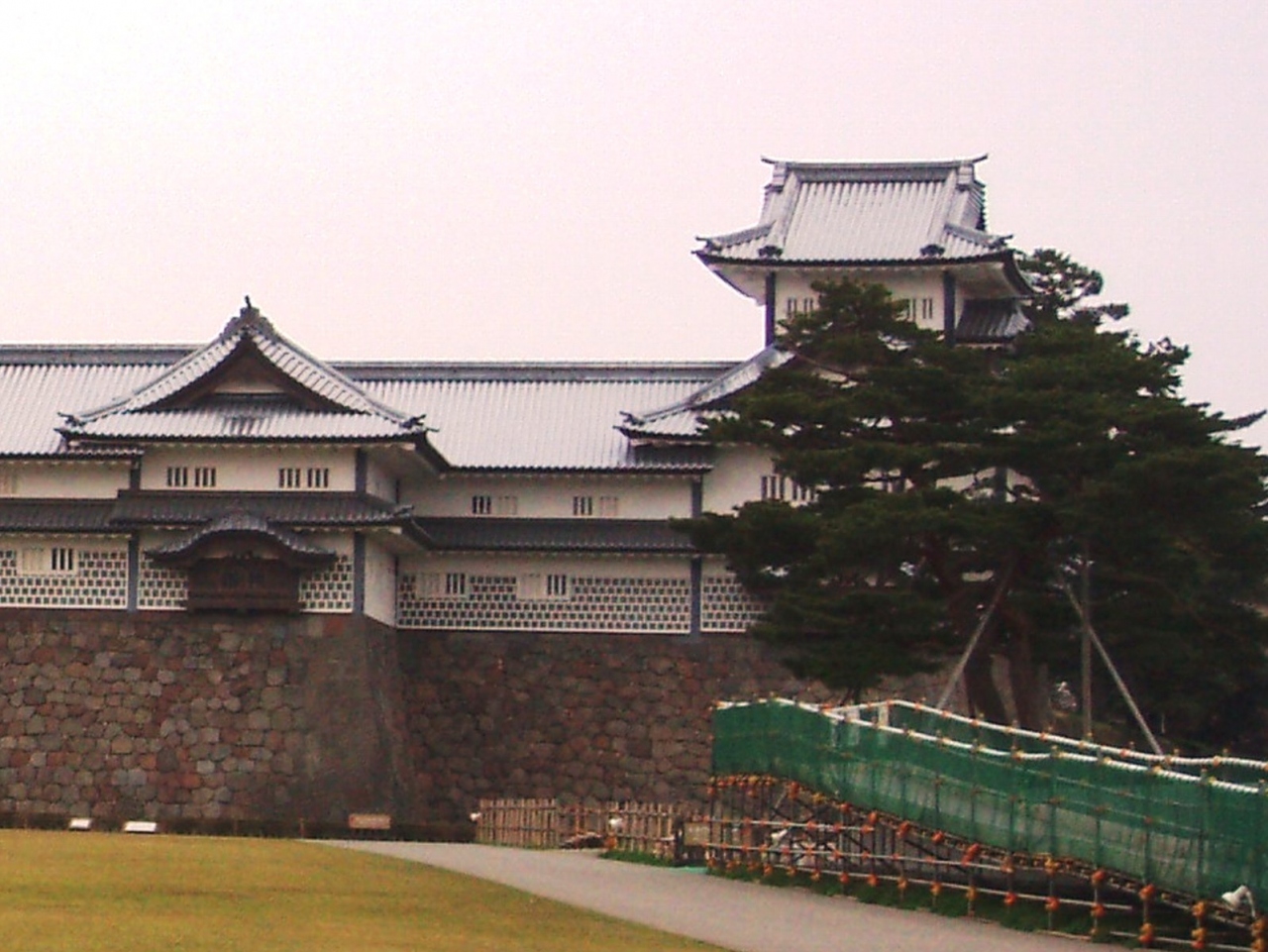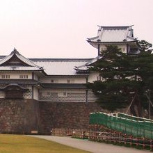 平成13年7月に完成した、延べ床面積1894.23平方mの復元建物で、石川門や三十間長屋と同様、鉛瓦や海鼠塀が外観の特徴なんだそうです。明治以降に建てられた木造城郭建築物としては日本国内では最大規模で、大径木の事前調達や土台石垣の解体、修築を含め、平成10年3月から実に3年4ヶ月をかけて造られたそうです。3層3階の菱櫓と橋爪門続櫓を2層2階の五十間長屋でつないでいます。これらの建物は、戦の際に二ノ丸を守るための施設だったそうです。