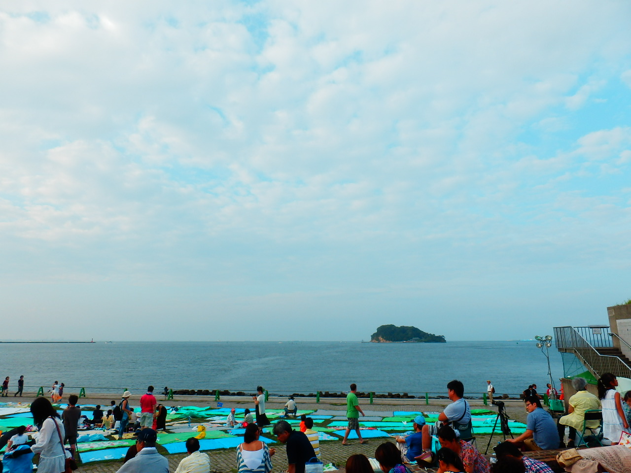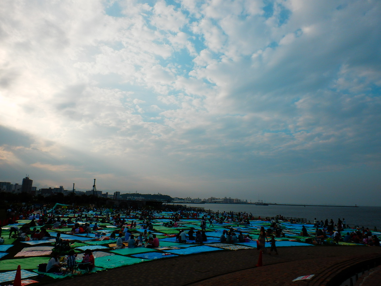 横須賀開国祭の花火を三笠公園やアメリカ海軍の基地内から見る人も多いと思いますが、こちらのうみかぜ公園は穴場で良い場所だと思います。駅からはちょっと離れていて、開国祭の日は駐車場も閉鎖されていますが、その分、空きスペースに余裕がありました。屋台も出ていますし、近くにリヴィンもあるので、食べ物や飲み物は豊富です。朝早くからビニールシートで場所取りをする人もいますが、夕方頃に訪れても、少人数ならば場所を確保することが出来ました。