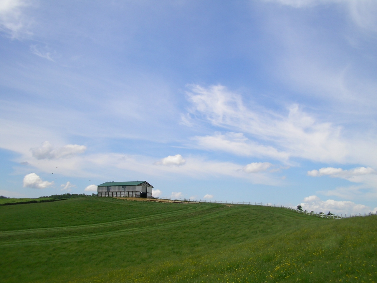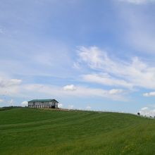 「サフォークランド 羊と雲の丘」は、士別市郊外にある観光牧場です。東京ドーム8個分という広い牧場にサフォーク種の羊を中心に100頭を超える羊が放牧されており、自由に羊と触れ合うことが出来ます。丘の上には羊小屋があって、暑さの苦手な羊は休んでいました。