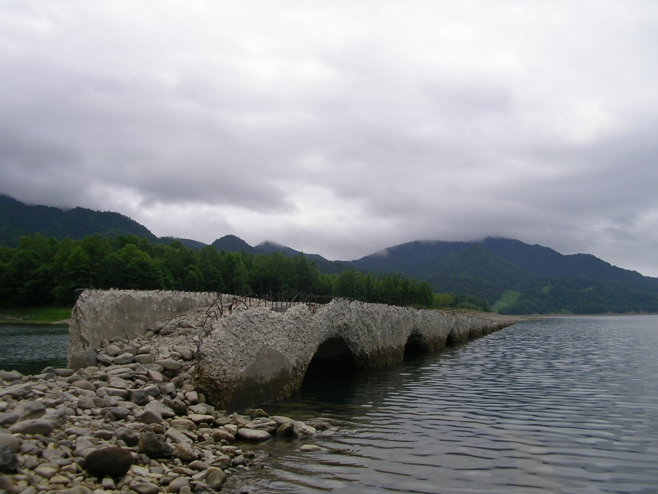 「タウシュベツ川橋梁」は、上士幌町の糠平湖にあるコンクリート製アーチ橋。タウシュベツ川橋梁とも呼ばれる。もともとは、旧国鉄士幌線が1939年(昭和14年)に十勝三股駅まで開通した際に架けられたものですが、1955年(昭和30年)に糠平ダムが建設され、橋梁周辺が湖底に沈むことになったため、士幌線は湖を避けるように新線が引かれた。その際に、橋梁上の線路は撤去されたもので、橋梁自体は湖の中に残されることとなり、現在までその姿をとどめている。糠平湖は人造湖であり、季節や発電によって水位が劇的に変化するため、橋梁全体が水に覆われてしまう時期もあり、「幻の橋」とも呼ばれているます。