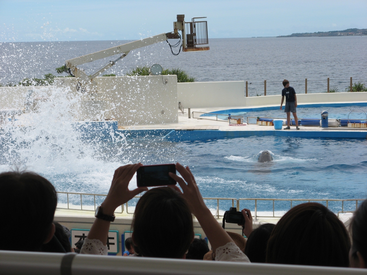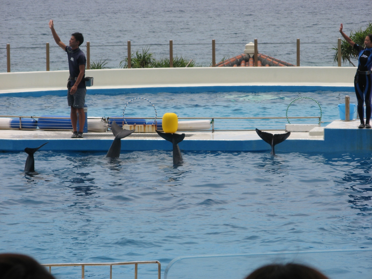 その点、イルカのショーを見る会場はかなりの座席があります。