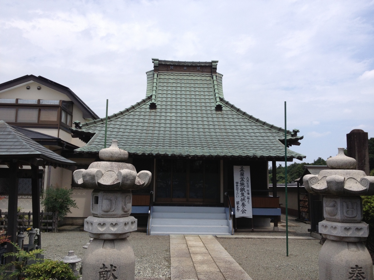 本堂は形が少々変っていて、入母屋造りの屋根が上に伸びる形で天高くそびえている様に見えます。少しバランスが……微妙?な感じです。