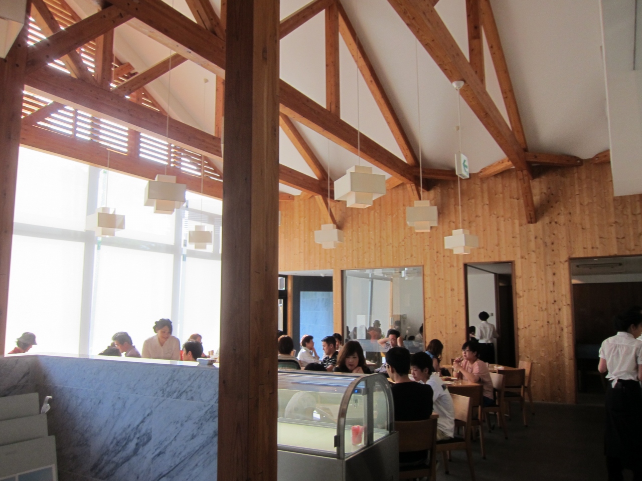 千歳空港の北側の千歳市街地の中にあります。千歳市役所の1本南側の通りで、真々地川と交差する真々地橋のたもとにあります。カフェの他に店舗のルタオ・ショップがあります。カフェの前にショップを覗いてみましたが、個人的には南国フルーツタルト(\1,400円)とホワイトレアチョコレート(\840円)が気になりました。さてカフェですが、11時から18時まで。休日の午後に行きましたが2~3人待ち。また一番人気の常夏パイ~トロピカルアイス添え(セット\890円)とマンゴーショコラ(セット\840円)が売り切れとなっていました。野菜ビュッフェやパスタ、ハンバーグなどのメニューがあるランチタイムも15時までで終了。開店は11時からですが、早めの時間に行くことをおすすめします。なお、席からはカウンター越しにスイーツ作りの調理場の様子が見えるほか、午後のやわらかな日差しを窓一面に受け、ゆったりとしたひとときを過ごすことができました。セットメニューでは季節のブレンドティー、コーヒー、オレンジジュースなどがついてきます。ブレンドティーはメロン風味で上品な味わいでした。千歳店では、食後、そばを流れる真々地川のせせらぎを散策できます。街中を流れる清流に(千歳は川がきれい)、向いの白樺林から吹きぬける風が心地よく、食後の休憩にはぴったりです。