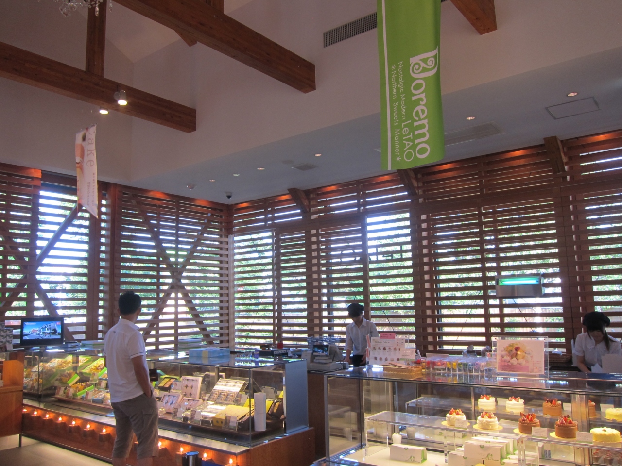 発祥の地、小樽に多くの店舗を持つLeTAO。千歳には空港内と、ここ、空港北の街中にあります。千歳市役所の1本南の通り沿い、小さなせせらぎ、真々地川との交点あたりです。商品の販売店舗とカフェがあり、相対して建っています。店舗の方は各種ケーキやチョコレート、パンなどがありました。行った時にはちょうど、南国フルーツタルト(\1,400円)というのがありました。また、チョコレートでは個人的にはホワイトレアチョコレート(\840円、「スタッフオススメ」)という白ブドウのワインの入ったチョコレートが気になりました。あとはカフェでゆったり。休日の午後に行きましたが、入口で2~3人の順番待ちや旬のケーキセットでは一番人気の「常夏パイ~トロピカルアイス添え」やマンゴーショコラの売り切れなどがありましたが、次点で頼んだメロンショートもメロンの風味をうまく生地とクリームに取り合わせていておいしかったです。食後、そばを流れる真々地川のせせらぎを散策できるのも千歳店のポイントだと思います。