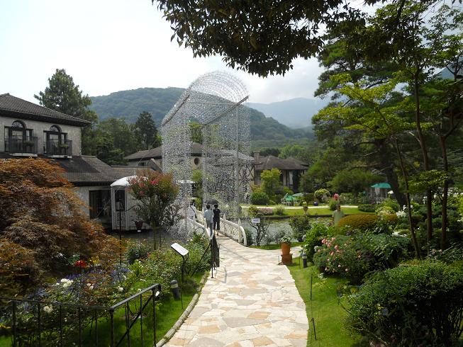 箱根には、何度も行っているのですが今回初めてガラスの森美術館に行きました。館内の庭園がなかなかすばらしく、ゆっくり散策するだけでも結構楽しめますよ。入場料が1300円と少々高め、割り引きを使っても1200円くらいです。今回は株主優待券を購入出来たので、三分の一程度済みました。