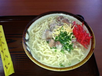 高江洲そばは軟骨ソーキの軟骨がトロトロするくらいじっくりと煮込まれているのが特徴でとても柔らかくて美味しいです。