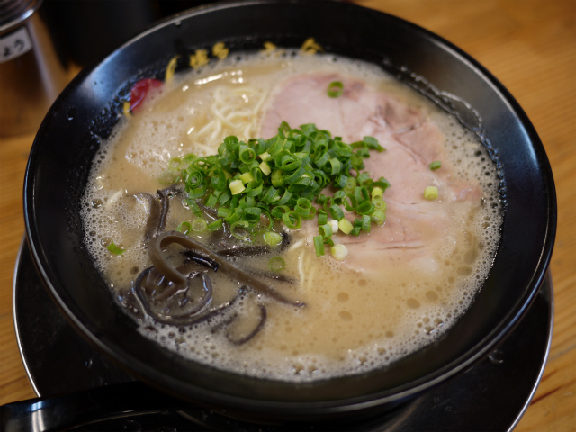 初めて福岡に来たので、ラーメンを食べなければと、こちらのお店に来ました。中洲川端駅から徒歩10分くらい。カウンターのみの小さなお店でした。店内に入った途端、強烈な豚骨のにおい。初めてだったのでびっくりしました。台北の臭豆腐を彷彿させるものでした。一幸舎ラーメン650円。こく深い味ですが、けっこうさっぱり。スープの表面は泡泡していました。麺の両は女性でも少ないくらい、腹6分目。お店の方も気配りが行き届いていて感じがよかったです。ごちそうさまでした。