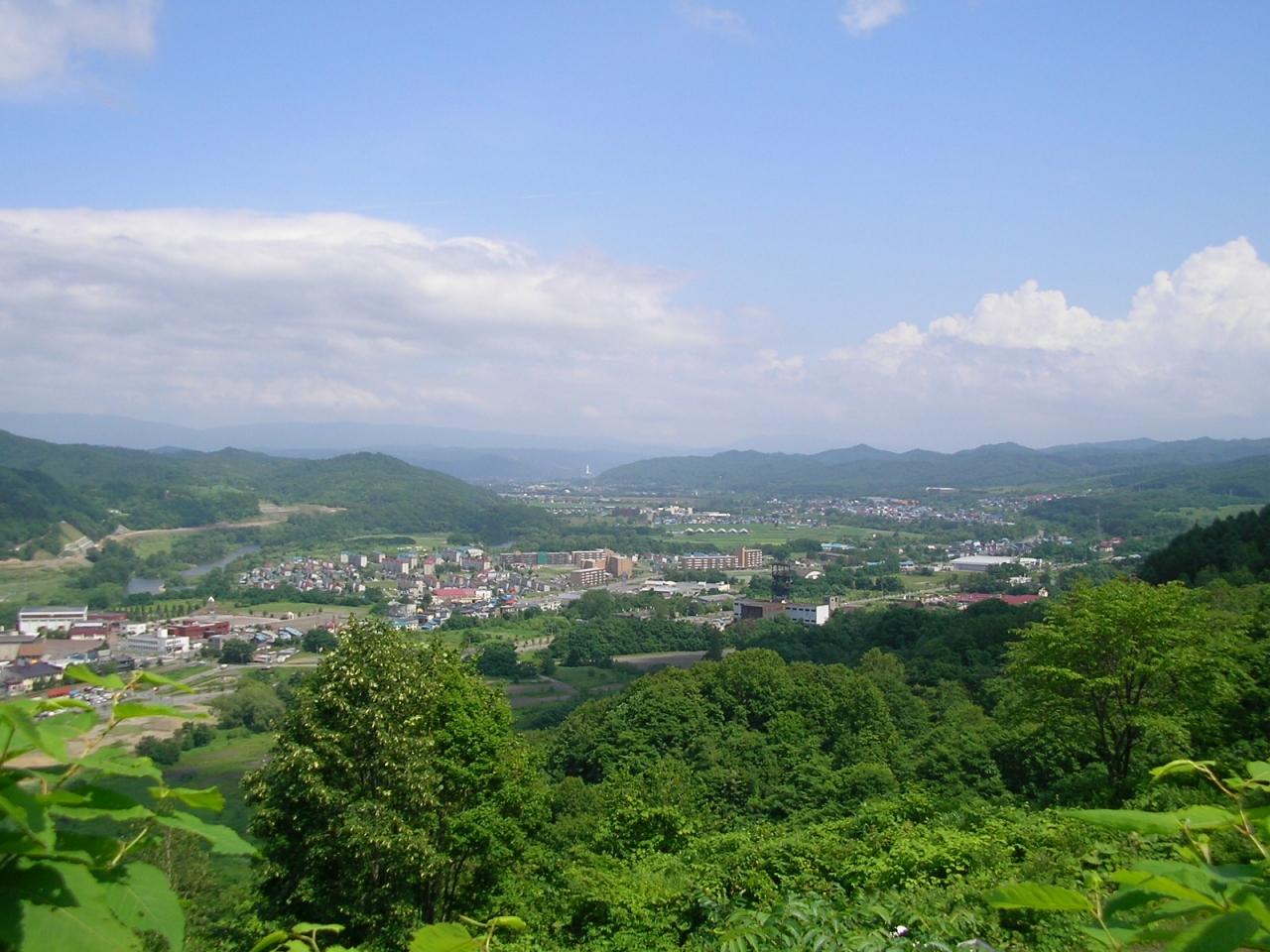 「ズリ山階段 (ズリ山展望広場)」は、JR赤平駅の裏にあります。ここのズリ山は北炭赤間炭鉱坑内から出た石を積み上げてできた山で、斜面には日本一となる777段のズリ山階段があります。777段の階段を休み休み上りました。天気がよかったので、頂上の展望広場からは赤平市街地や芦別岳、十勝岳、増毛連峰などを一望できました。ふもとには、駐車場があり、炭鉱の遺構が残されています。