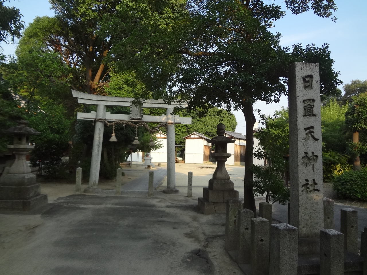 日置天神社には、惟喬親王が交野ケ原で遊猟したとき、愛鷹の姿が見えなくなったので、日没を惜しんで、『日を止め置かせ給え』と天神に祈願したという伝承があるそうです。また、日置天神社境内とその周辺は「日置山遺跡」と呼ばれる古墳時代から中世までの複合遺跡があり、神社のまわりは林や竹藪が自然のままに、開発されずい残っていました。