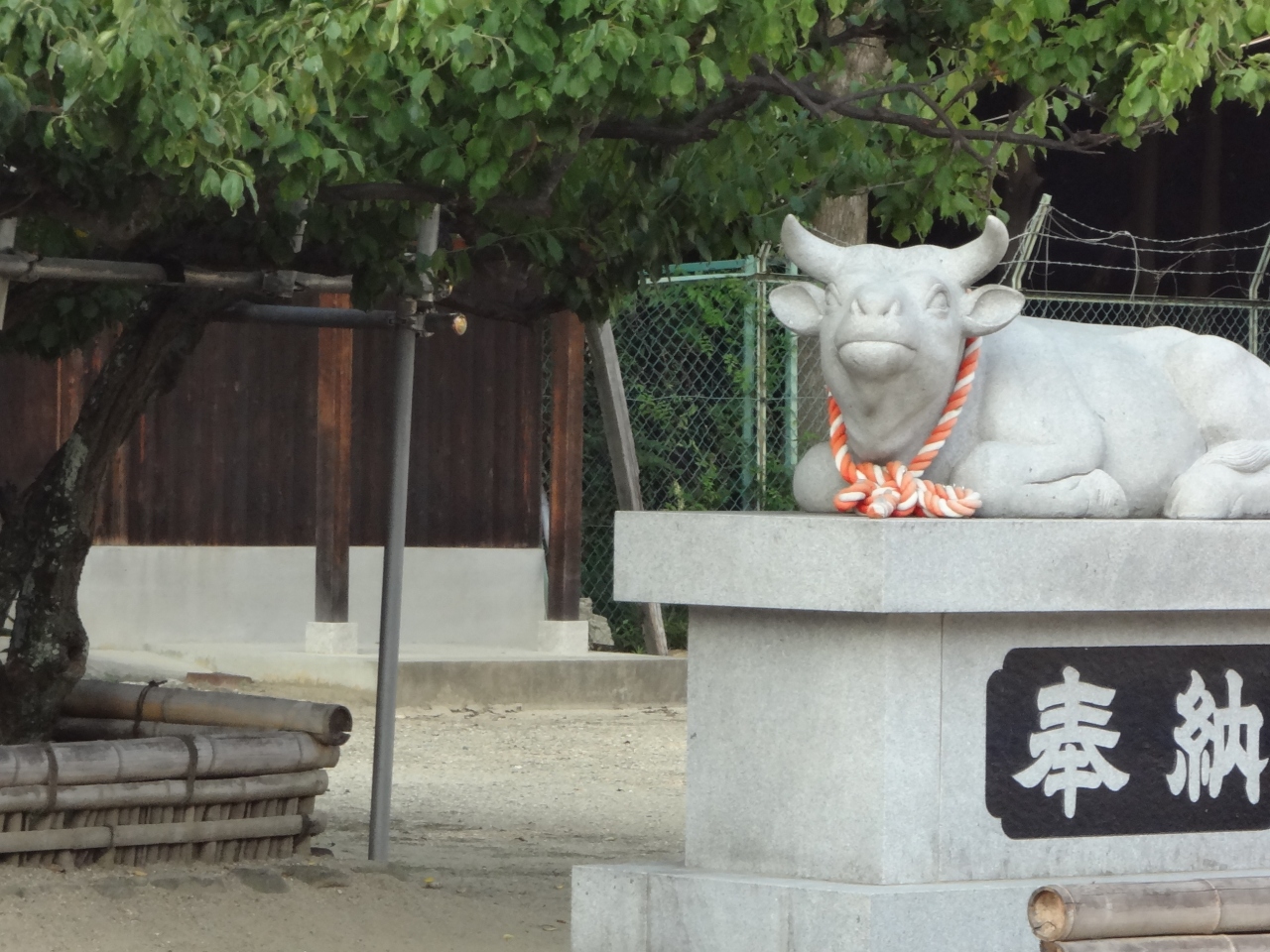 拝殿の前には、牛の石像があり印象的です。