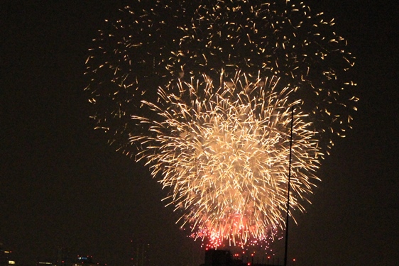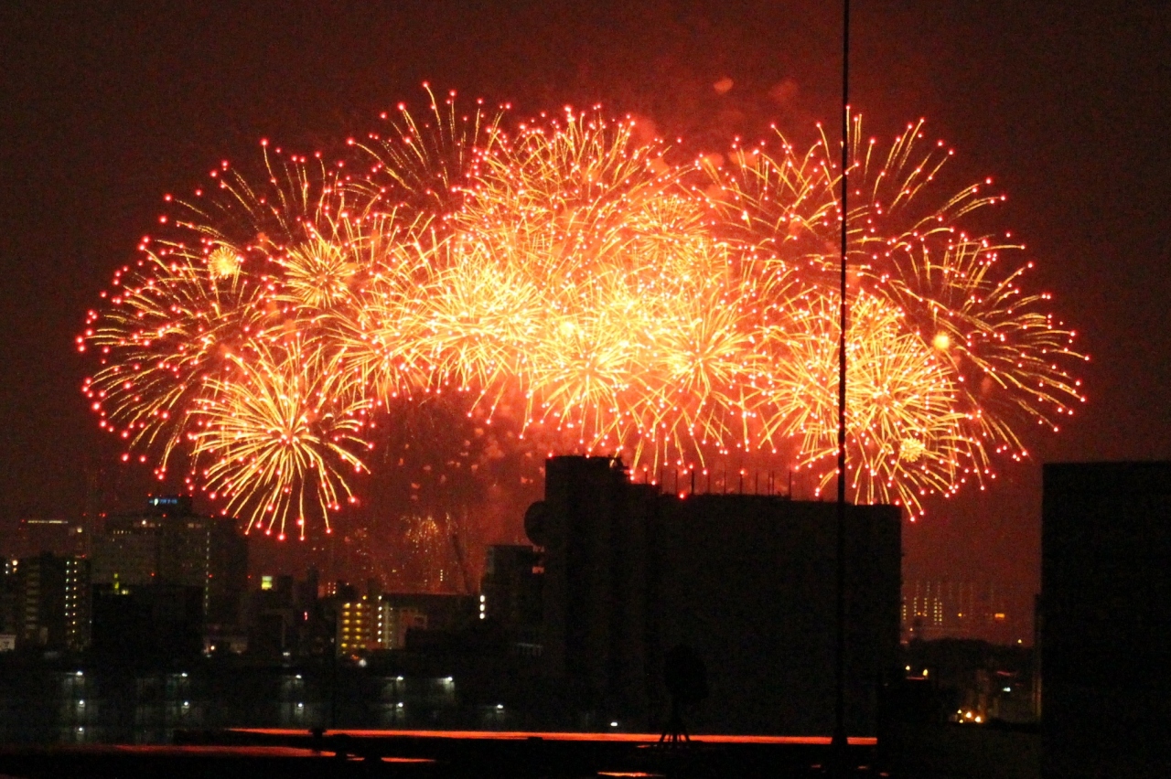 迫力にはちょっと欠けますが、神崎川あたりからでも見えるので、混雑が嫌な方はそちらのほうがいいかもしれません。