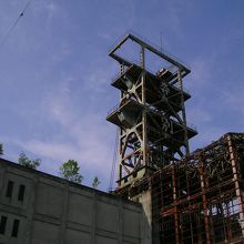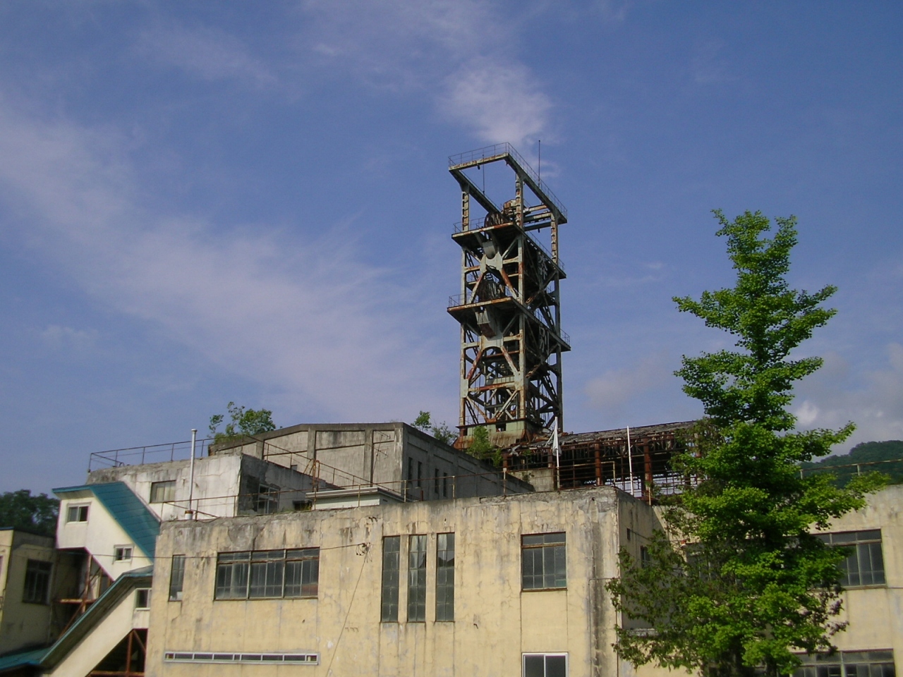 1960年(昭和35)に建築された立抗櫓です。高さ約51m、立抗内径6.4m深さ750mを誇る、東洋一と呼ばれる立抗で、鉱員、石炭、機械、ズリなどを一挙に運搬できる立抗櫓です。完成当時は「100年採炭できる」と言われていたそうですが、1971年(昭和46)年10月25日に閉山しました。老朽化が著しく、40年余に渡り放置されているので赤錆の浮きは激しいが、施設自体は現状のまま保存されています。歴史の証人・産業遺産として大切に保存して頂きたいと思いました。訪れる観光客も無く、静かな町外れにあるという感じです。近代産業史に興味のある方にオススメします。敷地外から外観のみ見学可能です。