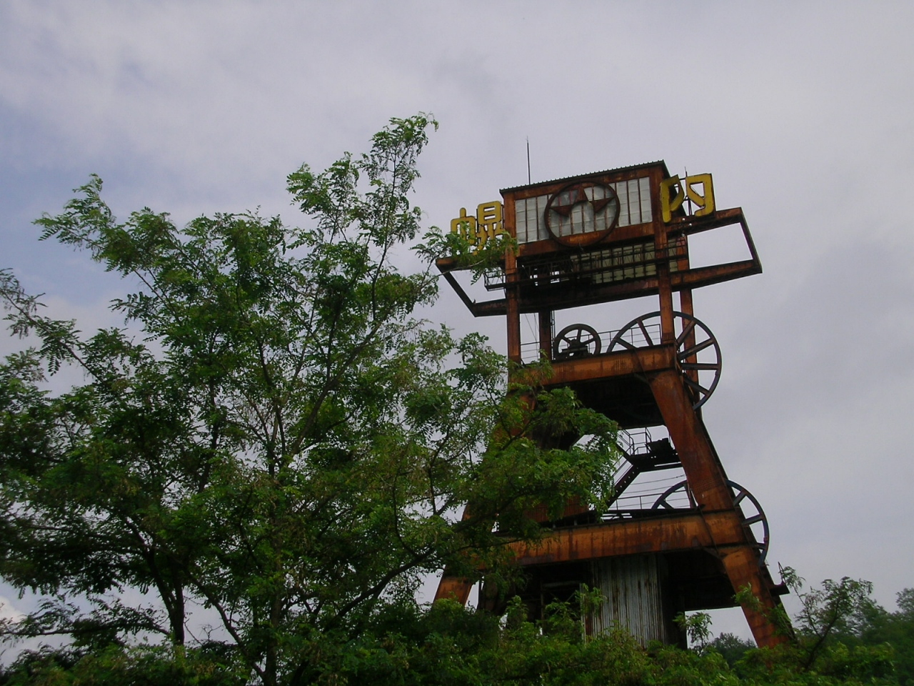 1966年(昭和41年)に建設された人員(2段式ケージ、50人乗降)、資材搬入及び入気の目的で建設された立坑です(高さ約40m、深さ915m)。立坑のそばには巻揚げ機室があります。立坑櫓後方にはズリ山がそびえて木々の間に見ることができます。閉山(平成元年)から二十数年余の歳月がたち、赤サビが浮き出ていて残念な状態になっていますが、歴史の証人、産業遺産として大切に保存してもらいたいと思いました。敷地外から外観のみ見学可能です。