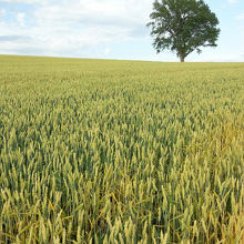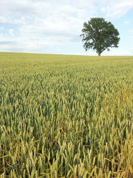 美瑛に入り、麦やジャガイモ等の広大な丘の畑の中を車を走らせていると、四季彩の丘の手前の道路端に、突如、ポツンと目立つ木があります。