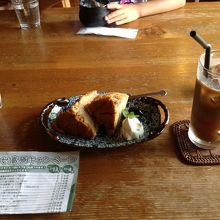 ログハウスのお店で、靴を脱いで上がります。店内はテーブル席、カウンター、和室があります。夏でも冷房はいれていないので、結構暑いですが、暫くすると慣れてきます。ピザ、シフォンケーキなどが楽しめます。親子丼などの和食系の食事メニューもあります。お茶をしましたが、ケーキも珈琲も美味しかったです。冷房が入っているとなおよかったかな。